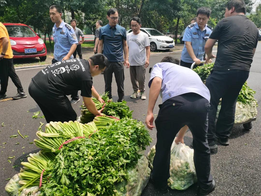 7月27日中午12點50分,干警韋修慶接到戰(zhàn)友王慶杰、王文超的電話,他們是山東省菏澤市曹縣邵莊鎮(zhèn)人。從網上了解到災情后,他們載著5噸蔬菜來支援輝縣。