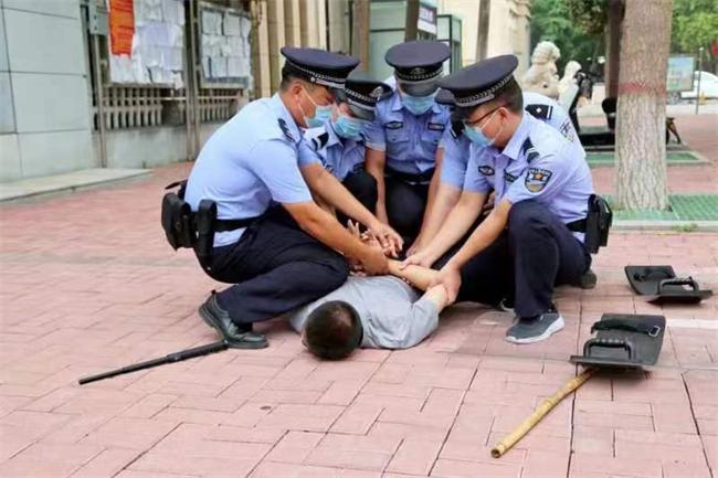 “當(dāng)事人”拒不配合安檢,與法警發(fā)生爭(zhēng)執(zhí),并試圖持械沖擊訴訟服務(wù)中心安檢門(mén)崗。為維護(hù)機(jī)關(guān)安全,安檢值班法警上前對(duì)其進(jìn)行阻攔并呼叫應(yīng)急處突隊(duì)支援。處突法警組成防暴隊(duì)形,使用防暴盾牌、防暴鋼叉、警棍等警用器械將其制服,迅速制止了“當(dāng)事人”強(qiáng)行闖入法院的行為,避免事態(tài)進(jìn)一步擴(kuò)大。