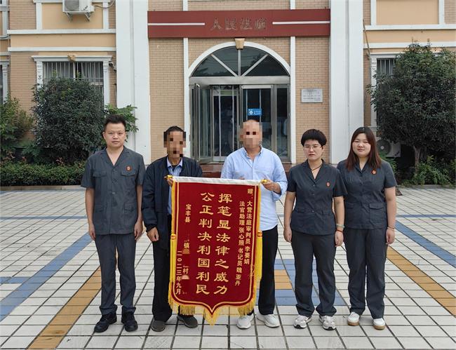 中新河南網(wǎng)(李要娟 張心照)近日,一起特殊的民間借貸糾紛案件當(dāng)事人主動(dòng)到寶豐縣人民法院大營(yíng)人民法庭履行了裁判文書(shū)確定的給付義務(wù),糾紛得到圓滿化解。9月28日,原告王某將一面寫(xiě)著“揮筆顯法律之威力,公正判決利國(guó)利民”的錦旗送到大營(yíng)人民法庭,表達(dá)感激之情。
