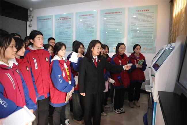 活動中,同學們在老師和講解員的帶領下參觀了訴訟服務中心,講解員向同學們介紹人民法院審判工作流程、“一站式”訴訟服務、智慧法院等相關工作,展示信息化便民服務設備,讓同學們感受信息化給司法審判帶來的便利。體驗了一次完整的安檢流程,同學們了解到安檢是保障法院安全的第一道關卡,可以有效排查危險物品、防止危害庭審安全事件發(fā)生。