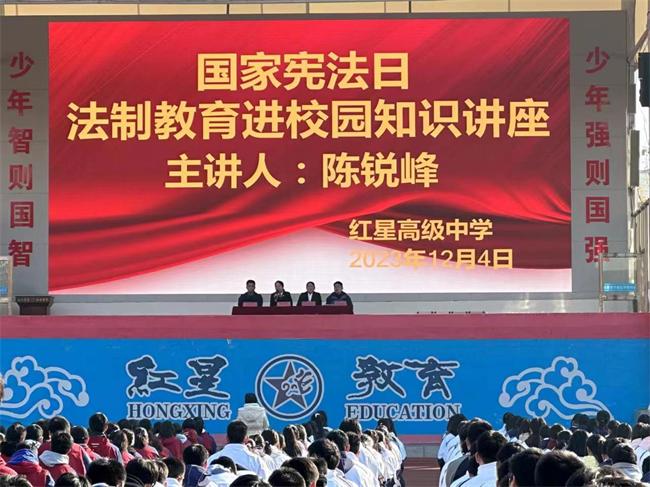 立案庭庭長陳銳峰一行走進(jìn)寶豐縣紅星高中,為在場2000余名師生送上了一堂法治教育公開課。陳銳峰以通俗易懂的語言生動(dòng)形象地向同學(xué)們闡述了憲法和法律的重要性,讓同學(xué)們進(jìn)一步感受憲法、了解憲法,使憲法真正走進(jìn)校園,讓法治陽光守護(hù)同學(xué)們健康成長。