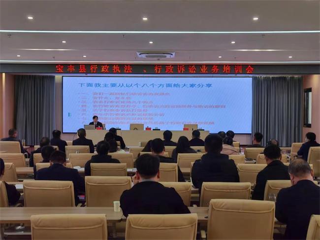 中新河南網(wǎng)(田波濤)為進(jìn)一步強(qiáng)化法治政府建設(shè),推動(dòng)依法行政,提高行政執(zhí)法效能,多措并舉有效化解行政爭(zhēng)議,降低行政機(jī)關(guān)敗訴率,12月8日下午,寶豐縣人民法院行政綜合庭庭長(zhǎng)李應(yīng)敏應(yīng)邀參加縣政府舉行的行政執(zhí)法、行政訴訟業(yè)務(wù)培訓(xùn)會(huì),為縣域內(nèi)具有執(zhí)法權(quán)的行政機(jī)關(guān)及各鄉(xiāng)鎮(zhèn)200余名行政執(zhí)法人員進(jìn)行相關(guān)業(yè)務(wù)指導(dǎo)。