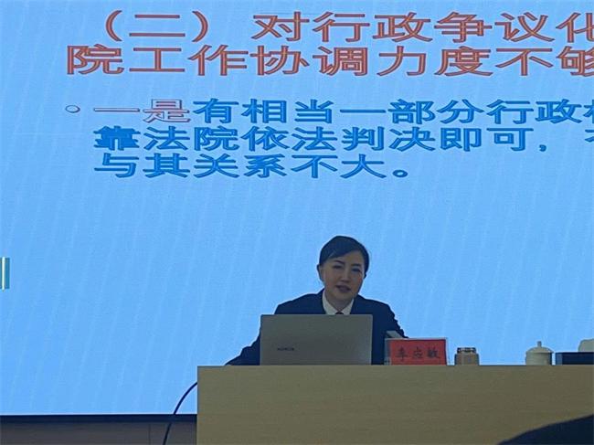 會(huì)上,李應(yīng)敏以行政訴訟發(fā)展史及寶豐法院2018年以來(lái)審理行政案件為切入點(diǎn),從區(qū)域、領(lǐng)域、違法類(lèi)型三個(gè)方面對(duì)行政機(jī)關(guān)如何提升行政執(zhí)法效能、降低行政機(jī)關(guān)敗訴情況,以及拆違類(lèi)型案件程序賠償、交警強(qiáng)制對(duì)駕駛?cè)蓑?yàn)血行為是否屬于行政訴訟受案范圍等進(jìn)行分析。隨著“放管服”改革不斷深入,行政機(jī)關(guān)執(zhí)法規(guī)范化水平不斷提升,其中行政補(bǔ)償、行政賠償類(lèi)案件下降幅度顯著,行政爭(zhēng)議訴源治理工作取得顯著成效,行政涉訴行為主要集中在行政登記、行政強(qiáng)制、舉報(bào)投訴、行政處罰、政府信息公開(kāi)、行政復(fù)議和不履行法定職責(zé)等方面,涉及交通、環(huán)保、勞動(dòng)社會(huì)保障、公安和資源等行政管理領(lǐng)域的案件增勢(shì)顯著。導(dǎo)致行政機(jī)關(guān)敗訴的主要原因:一是證據(jù)不足,行政機(jī)關(guān)在訴訟中未能提供充足的證據(jù)來(lái)支持其決定的合法性;二是違法決定,行政機(jī)關(guān)的決定存在違法行為,如超越權(quán)限、違反程序等;三是不當(dāng)使用裁量權(quán),行政機(jī)關(guān)在行使裁量權(quán)時(shí)存在濫用或錯(cuò)誤的情況,導(dǎo)致決定被撤銷(xiāo);四是程序違法,行政機(jī)關(guān)在作出行政行為時(shí)沒(méi)有合法程序意識(shí),侵犯行政相對(duì)人的合法權(quán)益。