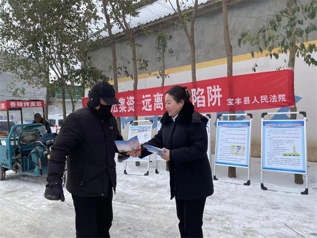 中新河南網(wǎng)(董媛媛)2024年新春伊始,天降瑞雪,到處銀裝素裹。2月22日,農(nóng)歷正月十三,傳承七百多年的麥田曲藝盛會——2024年中國·寶豐馬街書會正式啟幕,來自全國各地的眾多民間說唱藝人以天作幕,以地為臺“亮?xí)、獻(xiàn)藝、會友”。雖然天寒地凍,但曲藝愛好者趕會聽書的熱情不減,借此契機(jī),寶豐縣人民法院干警一大早驅(qū)車到縣城南馬街村主會場開展普法宣傳活動。