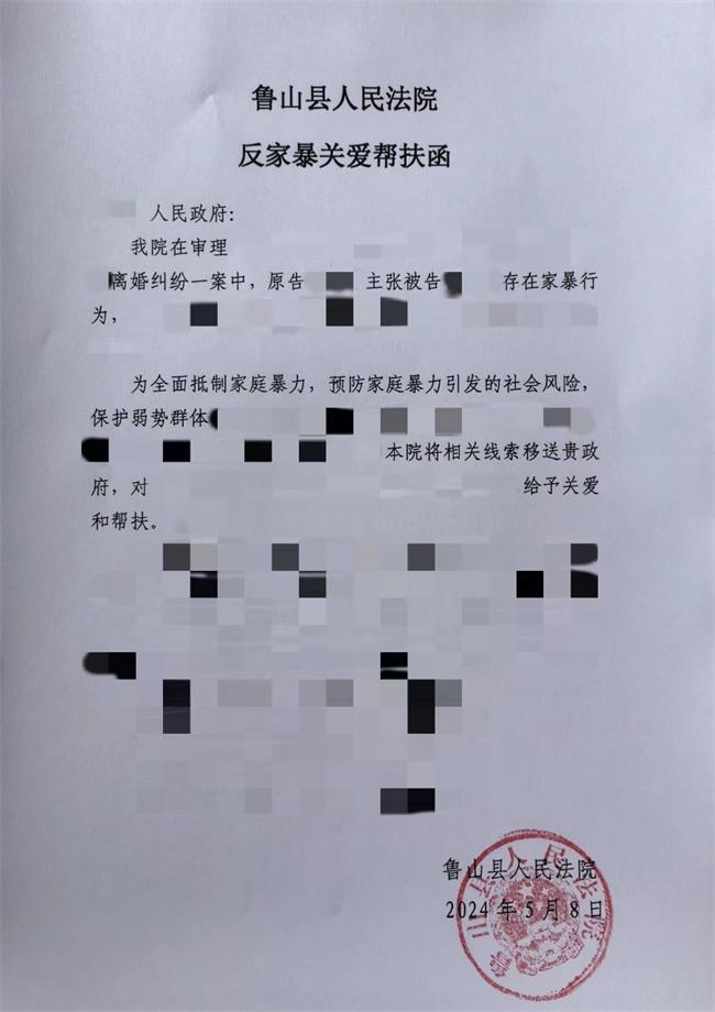 對(duì)家暴說“不”丨魯山縣法院發(fā)出《反家暴關(guān)愛幫扶函》