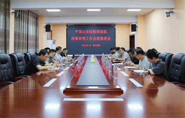 中新河南網(wǎng)(任意萍 耿海鑫)為深化法檢兩院協(xié)作,凝聚司法合力,共同提高刑事案件辦案質(zhì)效,6月19日下午,魯山縣法檢兩院刑事審判工作會商推進(jìn)會在魯山縣法院召開。市檢察院黨組副書記、副檢察長薛萬慶,市中院審判委員會專職委員李俊峰出席會議,縣法院黨組書記、院長謝磊,縣檢察院黨組書記、檢察長馮建廣以及法檢相關(guān)部門同志參加會議。