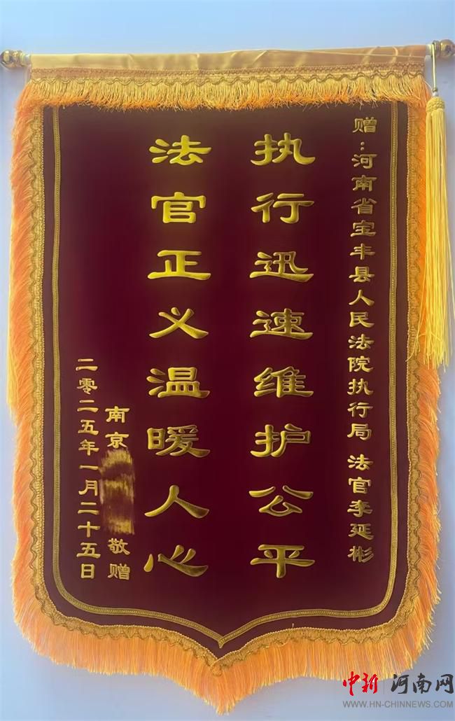 中新河南網(wǎng)(張孟婷)新春“開門紅”!2月6日,寶豐縣人民法院收到一面“執(zhí)行迅速維護公平,法官正義溫暖人心”的致謝旗幟和一封感謝信,申請人向執(zhí)行局李延彬法官表達了誠摯的謝意。這也是寶豐法院新春開工后收到的第一面致謝錦旗,給干警們帶來了莫大的鼓舞。