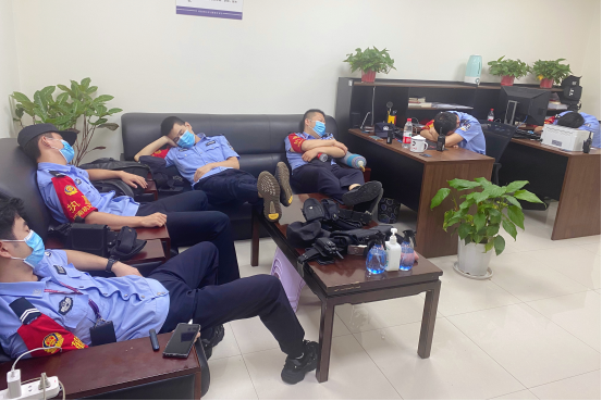 經(jīng)過20多個(gè)小時(shí)的連續(xù)奮戰(zhàn),滯留鄭州機(jī)場的6800余名旅客基本都得到了妥善安置,看著候機(jī)樓內(nèi)井然有序的運(yùn)行秩序,這些一直在忙里忙外的民警同志終于松了一口氣。“太累了,讓我在這里瞇一會,有事別忘了喊我!”臨睡前,民警們還不忘向前來交接班的同志反復(fù)叮囑道。說完,這群“藏藍(lán)衛(wèi)士”東倒西歪地在備勤室里躺了下來……