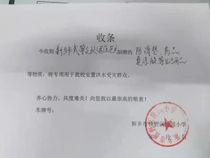 “齊心協(xié)力、共渡難關!向您致以最崇高的敬意!”新鄉(xiāng)市牧野區(qū)陵園小學表示道,“患難見真情。「兄x對我們的關心關愛”。一名軍轉(zhuǎn)監(jiān)獄干警主動聯(lián)系戰(zhàn)友,前往陵園小學災民安置點,組織向陵園小學捐贈了5車防滑墊、藥品、夏涼被等生活物資,為受災群眾送溫暖。
