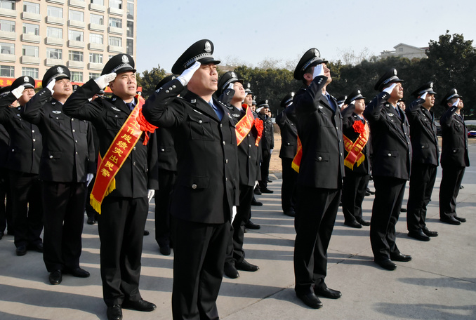 本網(wǎng)訊(張培 李書江)為熱烈慶祝第三個(gè)“中國(guó)人民警察節(jié)”,進(jìn)一步加強(qiáng)公安隊(duì)伍理想信念和忠誠(chéng)教育,切實(shí)增強(qiáng)廣大公安民輔警的職業(yè)榮譽(yù)感、使命感、歸屬感,2023年1月10日上午,許昌市公安局魏都分局組織舉行升國(guó)旗儀式暨重溫入警誓詞活動(dòng)。