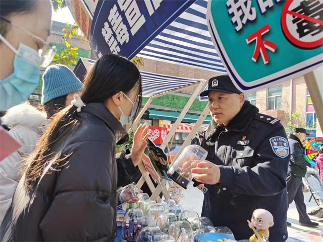 中新河南網(wǎng)(劉海磊 董廣偉)1月10日,在第四個中國人民警察節(jié)來臨之際,鄭州市公安局在中原區(qū)磨街文創(chuàng)園舉行警營開放日主題活動。活動現(xiàn)場設置了拍照區(qū)、警用裝備展示區(qū),以及社會面宣傳展區(qū),暨禁毒宣傳、網(wǎng)絡安全宣傳、出入境政策宣傳、車駕管宣傳、交通安全宣傳、110宣傳等多個展區(qū),讓市民體驗警營活動。鄭州市禁毒辦在當日通過擺設宣傳展臺、發(fā)放宣傳圖冊等方式,與群眾“零距離”互動,共慶中國人民警察節(jié),營造全民禁毒的良好氛圍。