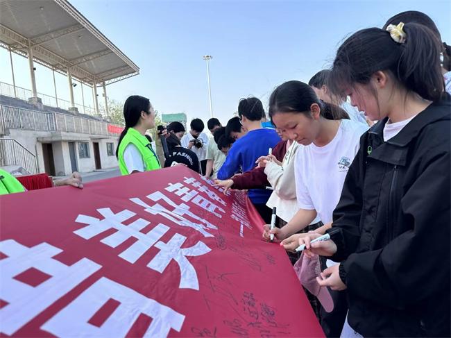 伴隨著金色的夕陽,學生們紛紛走向簽名條幅,鄭重簽下了自己的名字,提醒自己自覺遠離毒品,為無毒校園貢獻青春力量。