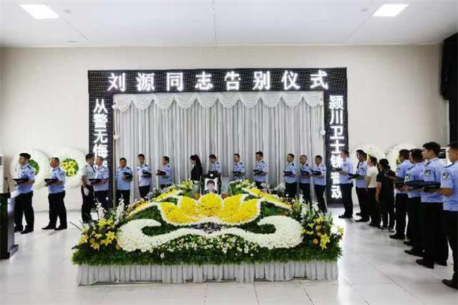 警營含悲悼戰(zhàn)友,潁川垂淚送忠魂。9月4日上午,在臨潁縣殯儀館告別禮堂內(nèi),禮兵肅立、莊嚴肅穆、花圈滿放、哀樂低回,長幼悲痛。劉源的遺體安臥在鮮花翠柏中。省公安廳、市公安局,臨潁縣委、縣政府等單位相關(guān)領(lǐng)導(dǎo),縣公安局全體班子成員、民輔警代表以及劉源生前的親朋好友、轄區(qū)群眾等各界代表400余人,懷著極其悲痛的心情,向劉源同志作最后告別。
