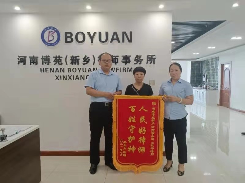 7月14日,當事人樊先生的家屬特地來到河南博苑律師事務所,將一面上書“人民好律師,百姓守護神”的錦旗送給高乾坤律師,以表示對高律師盡心盡責、誠信服務為其勞動爭議案件提供法律援助的感謝。