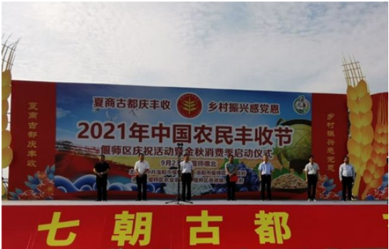 中新河南網(wǎng)訊(李志強(qiáng) 通訊員 陳延輝 王艷艷 李博)金秋時(shí)節(jié),瓜果飄香。9月23日上午,由中共洛陽市偃師區(qū)委、區(qū)政府主辦的“2021年中國農(nóng)民豐收節(jié)偃師區(qū)慶;顒(dòng)暨金秋消費(fèi)季啟動(dòng)儀式”在主會場岳灘鎮(zhèn)喂北村正式啟動(dòng)。來自各行業(yè)的嘉賓與農(nóng)民朋友們歡聚一堂,看特色演出、賞豐收美景、嘗農(nóng)家美味,共慶五谷豐登,喜迎國慶佳節(jié)。