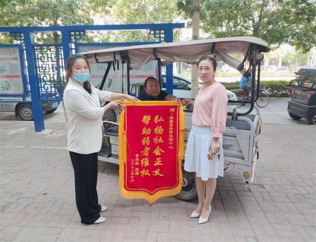 6月24日,曹某和其家屬來到該縣司法局公共法律服務(wù)中心,送來一面上書“弘揚(yáng)社會(huì)正義幫助弱者維權(quán)”的錦旗,以表對(duì)法律援助中心和援助律師的感謝。