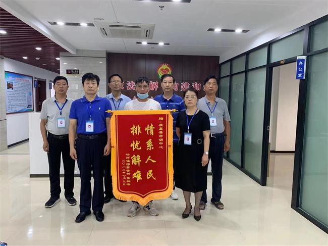 中新河南網(wǎng)7月22日電(李娜 張珂瑜)7月15日,輝縣市峪河鎮(zhèn)居民齊某來(lái)到獲嘉縣矛盾糾紛調(diào)解中心(下簡(jiǎn)稱“矛調(diào)中心”),送上一面印有“熱心幫助群眾無(wú)私奉獻(xiàn)百姓”的錦旗,感謝矛調(diào)中心在其家屬交通事故賠償一案中的辛勤付出;當(dāng)事人另一方也送來(lái)了“情系人民排憂解難”的錦旗,表達(dá)了對(duì)調(diào)解員的感謝之意。