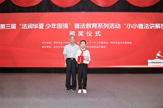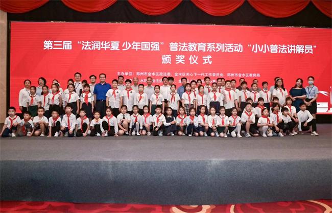 中新河南網(wǎng)8月18日電(田波濤)為迎接黨的二十大勝利召開,創(chuàng)造一個良好的社會法治環(huán)境,提高少年兒童的法律意識。由金水區(qū)政法委、金水區(qū)關工委、金水區(qū)教育局、金水區(qū)東風路街道辦事處、金水區(qū)宋砦法治展覽館聯(lián)合舉辦的第三屆“法潤華夏、少年國強”少兒普法活動——小小普法講解員活動頒獎儀式于2022年8月18日上午9點30分在鄭州弘潤華夏大酒店舉行。