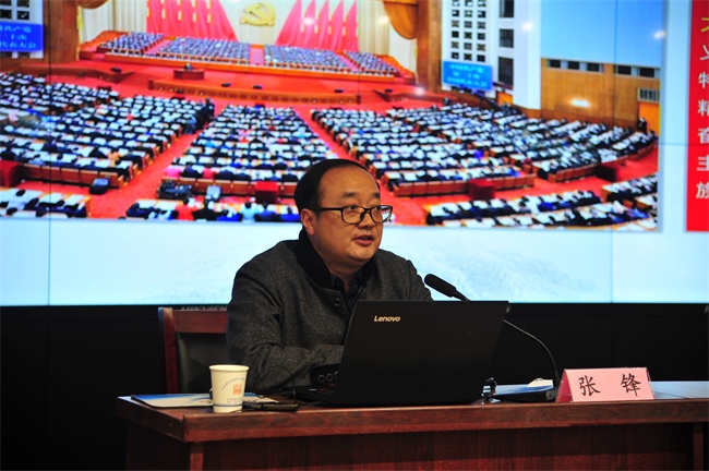 專題宣講報告會上,張峰同志對二十大報告最重要的理論成果——習(xí)近平新時代中國特色社會主義思想進行了全面解讀。宣講報告從二十大報告總結(jié)的新時代十年來的歷史性成就、歷史性變革的第一個理論成就入手,就習(xí)近平新時代中國特色社會主義思想如何實現(xiàn)新的飛躍進行全面講解,主要包括理論飛躍的哲學(xué)解讀、前提條件和重要標(biāo)志進行三個方面的系統(tǒng)講解。結(jié)合二十大報告中的“十個明確”、“兩個結(jié)合”、“六個堅持”、“兩個行”等內(nèi)容,使我們認(rèn)識到習(xí)近平新時代中國特色社會主義思想這個馬克思主義中國化時代化的最新理論成果,確實實現(xiàn)了理論創(chuàng)新的偉大飛躍,不斷開辟了馬克思主義中國化時代化的新境界,不斷譜寫了馬克思主義中國化時代化新篇章。