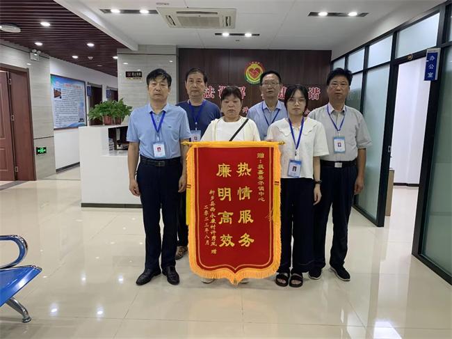 中新河南網(wǎng)(王凱琪 張珂瑜)8月25日,新鄉(xiāng)市新鄉(xiāng)縣合河鄉(xiāng)居民許某將一面印有“熱情服務(wù)廉明高效”的錦旗送到了獲嘉縣矛調(diào)中心,對調(diào)解員高效調(diào)解其愛人病亡補償一案表示感謝。