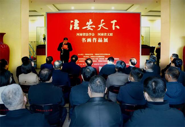中新河南網(wǎng)(田波濤)為深入宣傳貫徹習(xí)近平法治思想,弘揚(yáng)法治文化,根植法治信仰,營造全社會尊法學(xué)法守法用法的良好氛圍,12月4日,由河南省法學(xué)會、河南省文聯(lián)聯(lián)合主辦,河南省文藝志愿者協(xié)會承辦的“法安天下”書畫作品展正式開幕。河南省人大原副主任張世軍、王明義、劉滿倉、張程鋒等出席開幕式,省人大法制委員會副主任委員、省法學(xué)會常務(wù)副會長沈慶懷,河南省文聯(lián)黨組成員、副主席李明致辭。