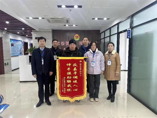 中新河南網(wǎng)(王凱琪 張珂瑜)12月21日,獲嘉縣位莊鄉(xiāng)居民劉某來到獲嘉縣矛調(diào)中心,送上一面“獲嘉矛調(diào)暖人心伸手援助解我憂”的錦旗,對老同志們調(diào)解其母親意外摔傷賠償一案的辛勤付出表示感謝。