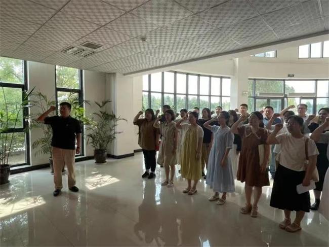 接著,課堂搬到了室外,全體黨員來到了張慶連先進(jìn)事跡展覽館,開展了一次“沉浸式教學(xué)”。在館內(nèi),黨員們跟隨著講解員的步伐,深刻感受到了張慶連同志對(duì)黨忠誠、勤學(xué)善思、肯于鉆研、躬身農(nóng)林的偉大品格,那些質(zhì)樸的文字、珍貴的照片生動(dòng)展示了張慶連同志無私奉獻(xiàn)的光輝歷程。最后全體黨員懷著無比崇敬的心情,在鮮紅的黨旗下,莊嚴(yán)宣誓。