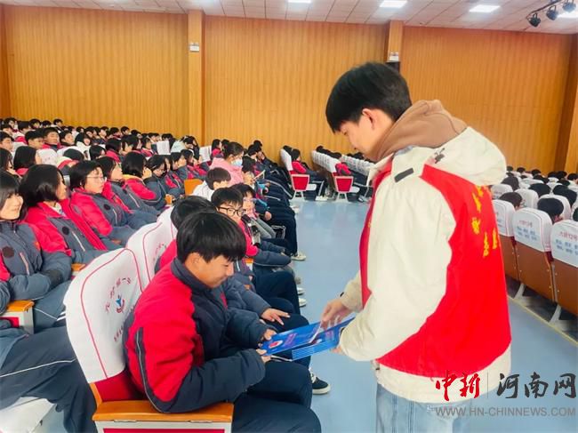 中新河南網(wǎng)(魏士普 馬錦軒)為加強(qiáng)青少年的法治教育,提高未成年人的法治意識(shí),在寒假來臨之際,獲嘉縣司法局組織普法志愿者深入到亢村鎮(zhèn)一中開展“送法進(jìn)校園”普法宣講活動(dòng)。