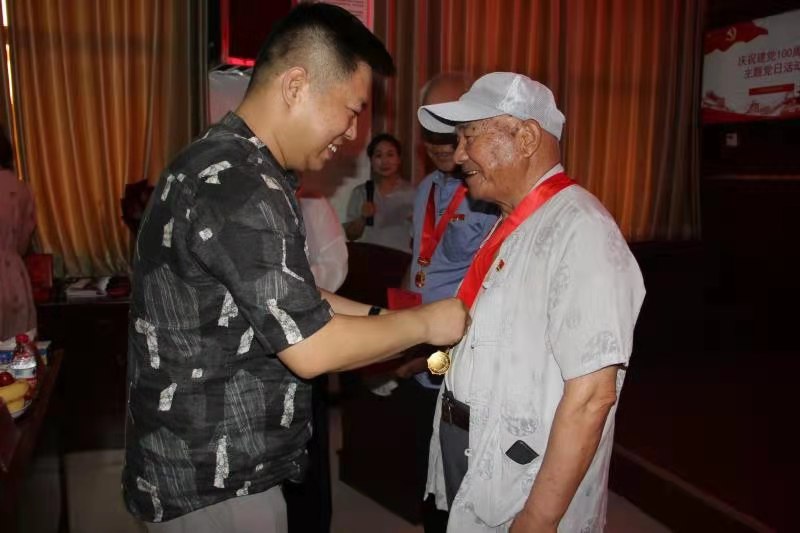薪火相傳,初心不忘。“光榮在黨50年”老黨員代表呂春書、蘇子清向在座各位黨員分享了自己入黨時候的故事,回顧了自身的工作經(jīng)歷,也表達了對黨關(guān)心關(guān)懷的感謝和繼續(xù)為黨的事業(yè)增光添彩的堅定決心。隨后,他們在鮮花和掌聲中為支部的年輕黨員代表佩戴黨徽并寄予殷切希望。