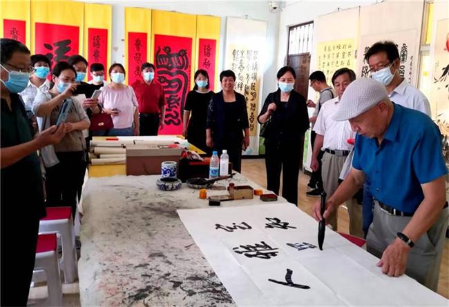 他們還參觀了王二崗村的三大非物質(zhì)文化遺產(chǎn)。在鳥蟲篆書法培訓(xùn)室,76歲的鳥蟲篆傳承人趙力志揮毫潑墨書寫了"業(yè)精于勤而荒于嬉″,"養(yǎng)浩然正氣,極風(fēng)云壯觀″等作品,現(xiàn)場交流,暢談傳統(tǒng)文化的魅力。