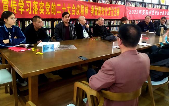 中新河南網(wǎng)11月10日電(趙力志 李泠頤)11月六日下午,安陽市龍安區(qū)龍圖街甲骨文書屋召開“宣傳學(xué)習(xí)落實(shí)二十大會議精神,爭做新時代文化先鋒座談會”。