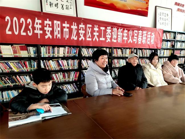 安陽市龍安區(qū)關(guān)心下一代工作委員會副主任王艷清,高度贊揚了座談會這一好的形式,贊揚了學(xué)生在甲骨文書屋既讀書又參加社會實踐和五老前輩的交流,贊揚了五老同志對青少年傳幫帶的精神和大學(xué)生、中學(xué)生認(rèn)真聽前輩講故事、談體會的精神,并寄于新春的祝福。還組織老教師、學(xué)生現(xiàn)場義寫贈送春聯(lián),并留下紅紅火火喜迎新春的美好合影留念。