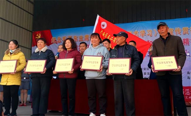 活動(dòng)現(xiàn)場(chǎng)河南省安運(yùn)交通運(yùn)輸有限公司,黨委副書記、董事、副總經(jīng)理王濤為王二崗紅色文化教研基地捐贈(zèng)了鈞瓷毛主席像。王二崗紅色文化籌備小組、紅色文化合作社為文藝宣傳隊(duì)授旗,并為紅色文化教育基地、軍樂隊(duì)三個(gè)小組、文化大院老年花棍隊(duì)、廣場(chǎng)舞隊(duì)六個(gè)先進(jìn)集體頒發(fā)了獎(jiǎng)牌,為王春杰被聘為王二崗紅色文化教研基地名譽(yù)主任,徐忠信被聘為紅色文化教研基地知青記憶館名譽(yù)館長(zhǎng)發(fā)放了證書。