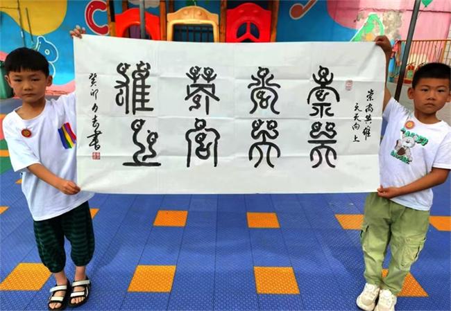 馬投澗鎮(zhèn)王二崗紅色文化合作社分別為他們送上書法作品"勇毅前行,碩果飄香。″鳥蟲篆,"崇尚英雄,天天向上。″龍安區(qū)文廣體旅游局龍圖街甲骨文書屋送上了設(shè)制的文化胸卡"學(xué)無止境″、"志存高遠(yuǎn)″。用文字祝賀和鼓勵(lì)兒童好好學(xué)習(xí),健康成長。