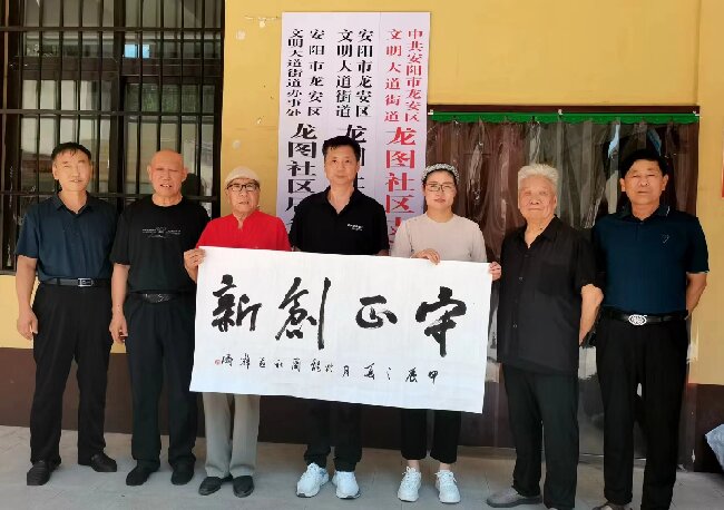 當(dāng)天龍安區(qū)文聯(lián)、河南省華夏文明促進(jìn)會(huì)豫北書畫院、龍圖街甲骨文書屋應(yīng)龍圖社區(qū)邀請。組織書法家深入基層,在社區(qū)和黨員、干部、居民共同書寫歌領(lǐng)黨的書法作品進(jìn)行交流,決心在黨的領(lǐng)導(dǎo)下,大力弘揚(yáng)中華民族傳統(tǒng)文化,增加人民群眾的精神食糧。
