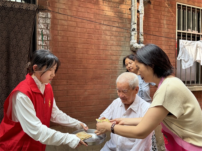在活動現(xiàn)場,培訓(xùn)師傅通過理論與實踐相結(jié)合傳授雜糧煎餅的制作方法和技巧,重點講解了面糊配方、甜面醬、脆餅的做法和攤煎餅手法,直到學(xué)員們掌握了操作的每一個流程,同時講解了雜糧餅的由來和故事,隨后,學(xué)員們親自動手操作,攤面、磕雞蛋、抹醬,一絲不茍,活動現(xiàn)場氣氛其樂融融。大家品嘗著自己做的酥香脆口煎餅,那個酥脆的“咔嚓”聲,伴隨著入口的各種食物,真的是太棒了。最后,社區(qū)工作人員和志愿者為行動不便的老人送去了雜糧煎餅,老人高興得合不攏嘴,非常感謝社區(qū)送來的溫暖。