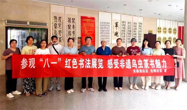 安陽市安泰苑社區(qū)參觀慶“八一”非遺鳥蟲纂書法展