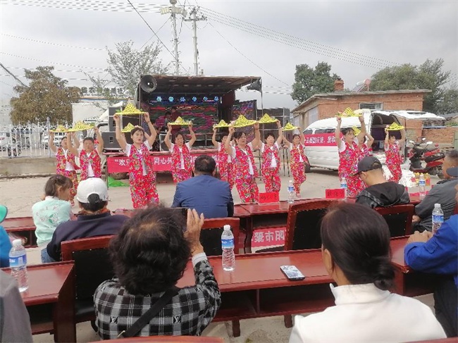 緊接著,文藝演出精彩紛呈,好戲連臺。一曲《美麗的朝陽是我的家鄉(xiāng)》悠揚(yáng)響起,歌聲深情地表達(dá)了人們對家鄉(xiāng)的熱愛與依戀。隨后的戲曲風(fēng)采環(huán)節(jié),評劇《報花名》選段更是讓觀眾領(lǐng)略到了傳統(tǒng)藝術(shù)的魅力,那經(jīng)典的唱腔、傳神的表演,無不讓人沉醉其中。創(chuàng)意舞蹈《草帽舞》以新穎的形式和歡快的節(jié)奏,展現(xiàn)了農(nóng)民的勞動生活與樂觀精神;而《風(fēng)雨彩虹鏗鏘玫瑰》的歌聲,則激勵著每一位觀眾勇敢面對生活中的挑戰(zhàn),永不言敗。此外,《我家在這里》、《快來東北嘮家!返雀枨B唱,更是用通俗易懂的語言,唱出了人們對家鄉(xiāng)的深厚情感和對生活的無限熱愛。活動的高潮部分,當(dāng)屬廣場舞《幸福中國一起走》。隨著音樂的響起,居民們紛紛走上舞臺,用整齊劃一的舞步,表達(dá)著對健康生活的追求和對幸福未來的憧憬。他們的笑容如花兒般綻放,傳遞著滿滿的正能量。