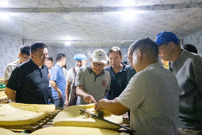 工廠冷藏室內(nèi),磨豆師傅用鐵鉤提著一塊豆腐,向正在品嘗的考察團(tuán)人員熱情介紹著:“我們洧川的豆腐,最大的特色就是筋道,俗話說‘麻繩串豆腐,提不起來’,洧川豆腐不但能用麻繩穿起來,還能用鐵鉤掛起來,且豆香濃郁,煮而不散,越煮越筋。”說著,師傅還切下一塊豆腐,將其擲在另一塊豆腐上,只見豆腐不但未撞爛,反而高高彈起,引得在場(chǎng)眾人拍手大笑,對(duì)洧川豆腐的“筋道”有了生動(dòng)形象的認(rèn)知。