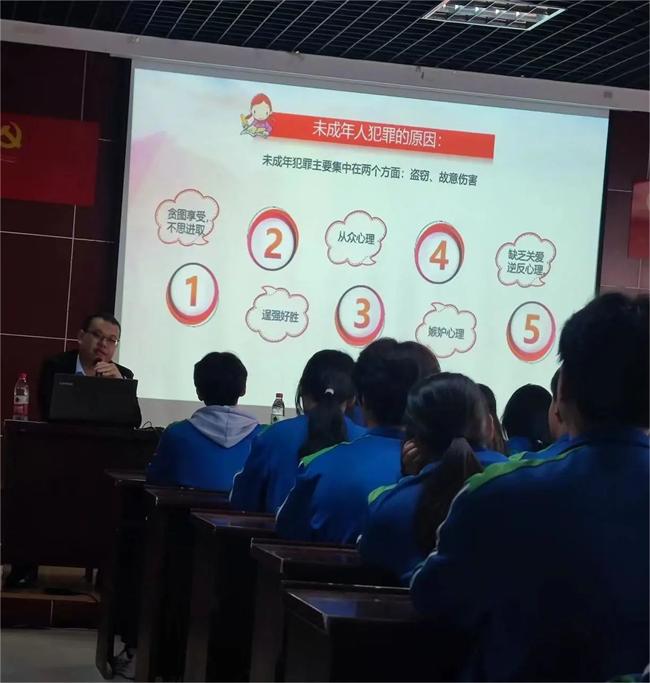 高乾坤律師從身邊的真實(shí)案例出發(fā),用簡潔生動的語言,以案釋法,從法律的概念和法律責(zé)任年齡、未成年人常見的違法犯罪行為以及違法犯罪法律責(zé)任等方面進(jìn)行生動形象的講解,讓大家了解到一些與自身息息相關(guān)的法律知識。同時高乾坤律師深入分析未成年人違法犯罪的成因,并提出預(yù)防青少年違法犯罪的對策以及青少年自我保護(hù)技巧,引導(dǎo)學(xué)生們樹立正確的人生觀、價值觀和世界觀,教育學(xué)生通過合法途徑維護(hù)自身合法權(quán)益。