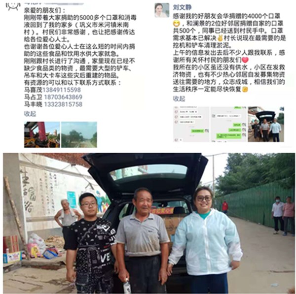 在暴雨來臨之時,在所住小區(qū)停水停電之際,冒雨前往物業(yè)中心,作為后勤機動人員為小區(qū)居民提供力所能及的幫助。雨勢稍緩,積極協(xié)調(diào)購買相應(yīng)的救援物資,從開封等地購買了方便面、水、面包、西瓜、消毒物品等,為鑫苑名家小區(qū)、龍門實驗中學、豐慶路街道辦事處、南陽新村街道辦事處等送去了這些溫暖和希望。