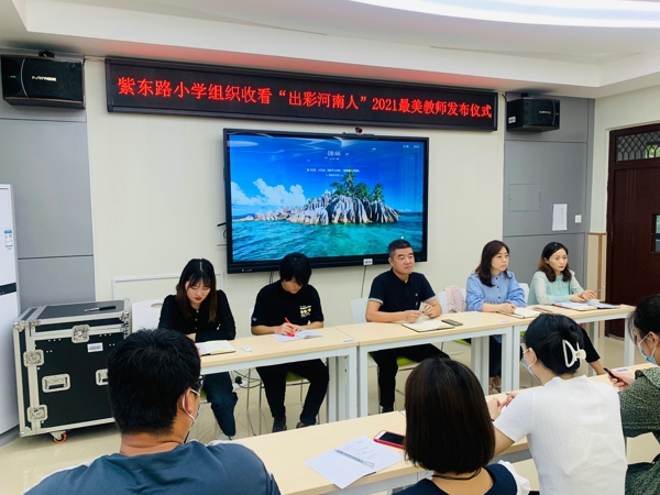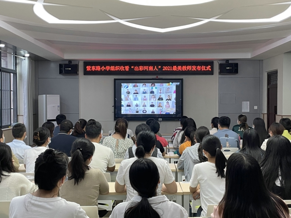 鄭州管城區(qū)紫東路小學組織教師收看“出彩河南人”2021最美教師發(fā)布儀式