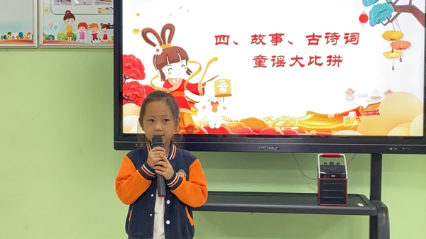 又是一輪團圓月,又是一年中秋來。中秋節(jié)又稱月夕,始于唐朝初年,盛行于宋朝,至明清時已成為與春節(jié)齊名的中國傳統(tǒng)節(jié)日之一,它代表著團圓、吉祥。志愿者老師劉曉華向參加活動的兒童及家長介紹著中秋節(jié)的來歷和習(xí)俗。比如拜月、觀潮、猜謎、玩花燈、品月餅等。隨后,大家跟隨志愿者劉老師學(xué)習(xí)中秋古詩操。“詩詞童謠大比拼”環(huán)節(jié)把整個活動氛圍拉到高潮,孩子們熱情高漲,迫不及待地想要展示自己準備好的中秋詩詞。一字一句,讓我們感受到律詩之美,細細品味著古人的中秋情誼,也逐步加深了孩子們對中秋節(jié)的理解。