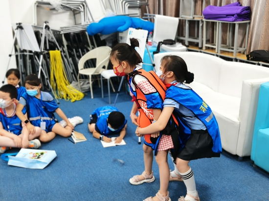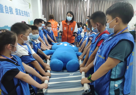 本次活動(dòng)中,志愿者采用體驗(yàn)式學(xué)習(xí)的方法,在教會(huì)小記者們千斤頂抬升、AED的使用、家具防傾倒、海姆立克急救法、毛毯擔(dān)架計(jì)時(shí)賽、結(jié)繩大比拼等6項(xiàng)技能后,由他們親身體驗(yàn)各項(xiàng)安全救護(hù)知識,在體驗(yàn)中快速掌握這些救護(hù)能力。