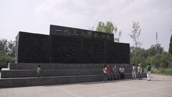 9月14日下午,在黃河花園口記事碑前聆聽(tīng)村老干部講當(dāng)年花園口決堤事件的真實(shí)情況。