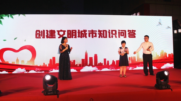 除了精彩紛呈的節(jié)目表演,活動穿插的黨史知識和創(chuàng)建文明城市有獎問答環(huán)節(jié)更是激起了現(xiàn)場觀眾極大的興趣,現(xiàn)場觀眾踴躍參與、氣氛熱烈。最后,紅歌連唱《唱支山歌給黨聽》《我和我的祖國》,用歌聲禮贊新中國,表達(dá)對祖國的熱愛與祝福,為整場演出畫上圓滿的句號。