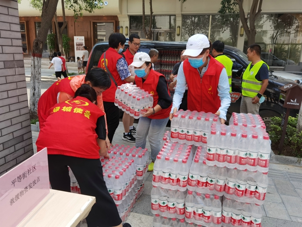在平等街服務(wù)中心,老師們頂著烈日,不怕苦不怕累,與社區(qū)工作者通力合作為轄區(qū)居民送上礦泉水、面包等生活物資,不時地得到街坊群眾的嘖嘖稱贊,感謝之聲連綿不絕,引得無數(shù)群眾自發(fā)參與到志愿服務(wù)隊(duì)伍中來,繪就了一幅幅互幫互助的暖心畫卷。面對近期仍然無法正常供水的現(xiàn)狀,該校副校長遆亞娜告訴周邊的居民用水用電隨時到南學(xué)街小學(xué),學(xué)校的大門永遠(yuǎn)為大家敞開。