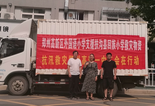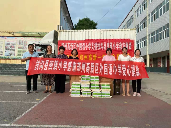 鄭州高新區(qū)外國語小學(xué)在抗汛救災(zāi)、修復(fù)學(xué)校的同時,也關(guān)注抗洪動向,在得知周口扶溝地區(qū)受災(zāi)嚴(yán)重之后,便向扶溝縣回族小學(xué)伸出了援助之手。外國語小學(xué)和周口扶溝縣回族小學(xué)早在2016年就結(jié)下了深厚的友誼,幾年間,外小先后派遣優(yōu)秀教師前往扶溝縣回族小學(xué)支教,輸出先進的育人理念與課堂教學(xué)模式;扶溝縣回族小學(xué)先后有多位老師來外小參觀學(xué)習(xí),并把“出彩精神”帶給扶溝縣的孩子。7月26日,外國語小學(xué)委派萬艷娜老師為援助使者,帶著一批體育器材、學(xué)習(xí)用品及救援物資,奔赴周口扶溝縣,為同樣受災(zāi)的扶溝縣回族小學(xué)送上外小的牽掛和關(guān)懷。