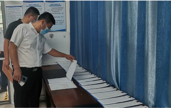 督查組重點對學校的醫(yī)務室、隔離室、防疫物資室以及校園汛后恢復與重建等重點區(qū)域進行了實地查看。在醫(yī)務室,劉娜校長向督查組匯報了疫情防控應急指揮體系建設情況,督查組聆聽之后向校醫(yī)來敬慧提出“上課期間,如果發(fā)現(xiàn)學生出現(xiàn)疫情要如何處置”的問題,校醫(yī)對于突發(fā)疫情的隔離處置、路線疏散、上報流程等環(huán)節(jié)和注意事項對答如流,受到督查組領導高度贊揚。