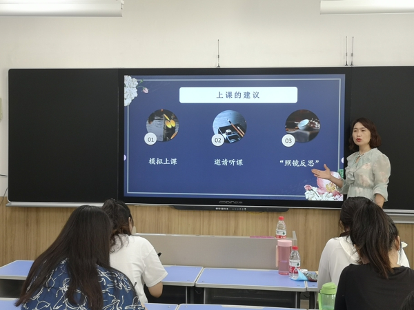 楊蓓副校長對(duì)新教師進(jìn)行培訓(xùn)